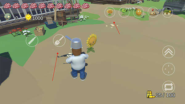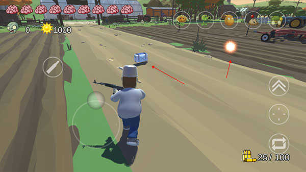 还可以利用手中的枪来攻击僵尸,天上会随机掉落阳光和弹药,靠近即可拾取。