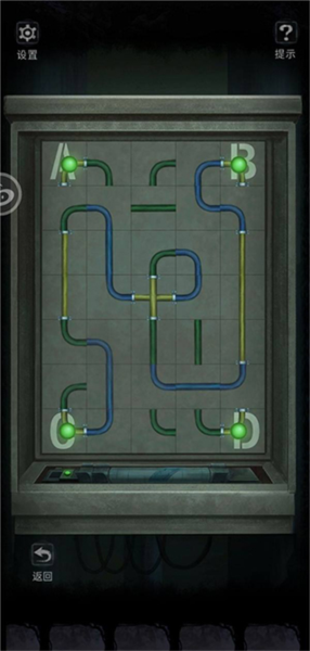 回到剧场,点击台上的妈妈,过完剧情再点一次妈妈,得到黑色钥匙,打开分析室柜子中间左边的格子,得到碘液和蓝色电容。更改线路,只接通BC,然后又烧坏了,转动装置下方右边转轮。