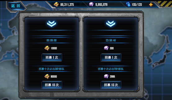 获取方法:建议战争贩子每天刷新3-5次,以便获取。(万能碎片用小红花换,还有就是金币10连,还有就是精英关卡刷下来部队碎片,合成部队之后换)石油币和荣耀币比较金贵,不建议换。
