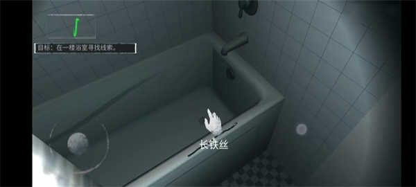 来到前面的第一扇门这里,使用钥匙开门进去。之后来到浴缸这里拿到长铁丝。(需要注意这个时候拿到铁丝场景就会变红,想要出去的话,就必须反复横跳)