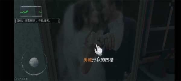 21、开门进去之后往前走,来到图片中所处的位置。在相框上面进行安装男士戒指。(这个时候旁边的小姐姐会醒来,之后即将开始追逐战)