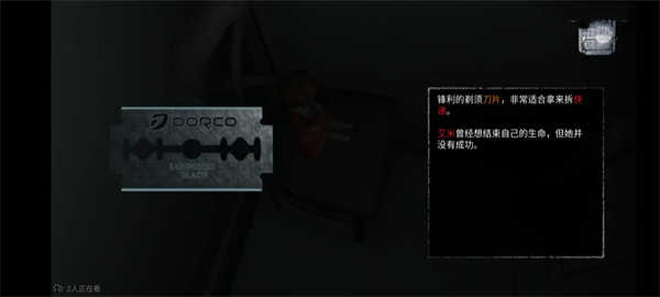 之后不要上楼,先来到楼梯下面的这个房间里面拿刀片。(需要注意的是必需在一开始的时候就到这个房间把刀片最先拿走,如果不拿后面再拿的话小姐姐就会跟过来)
