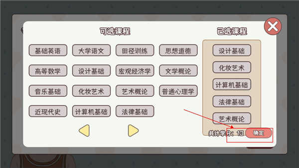 每门课程都会增加一个属性,降低一个属性。选课的时候长按那门课程可以查看。