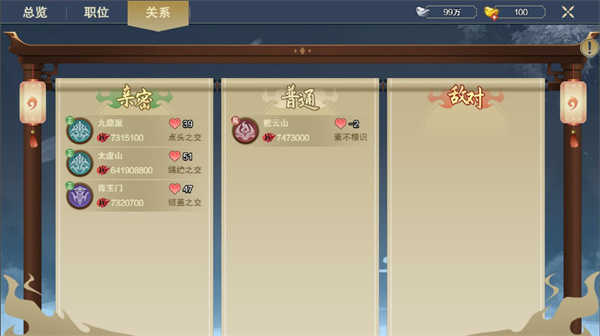 如果一味的发动战争,虽然能够抢夺对方门派的资产,获得一定的江湖声望。但是也同样会被其它门派关注起来,甚至会引起一些名门正派的厌恶。当然,也有可能会获得一些邪门外道的青睐。一旦战争失利,最好能够善用外交手段,寻求其它友好势力的支援,为门派求得恢复实力的机会。