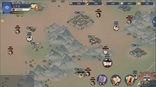 在游戏之初,我们的门派实力弱小,并且周围分布着强弱不一的各种NPC门派。此时切勿交恶各方NPC势力,理应委婉周全,方能无往而不胜。此时NPC门派会根据与玩家门派之间的好感度,进行相应的AI计算,其结果可能是善意的行为,如门派交流、货物贸易、门派任务等;当然也可能是恶意的,如上门抢劫、强行比武切磋、攻占所属资源点等;这个阶段双方之间的战争规模往往比较小,大多是两个门派之间的一些恩怨。