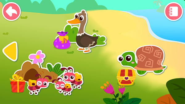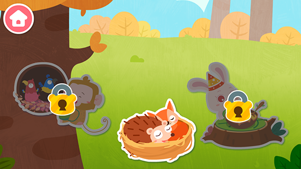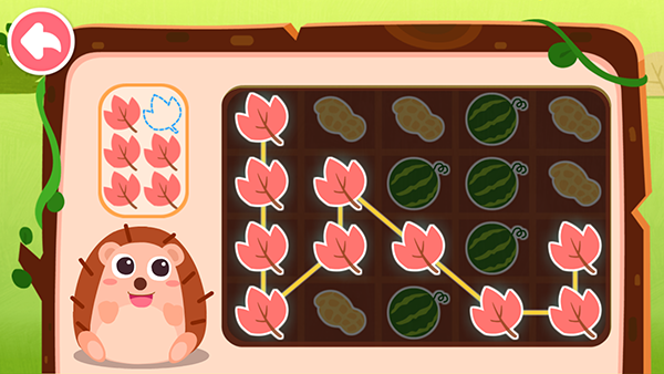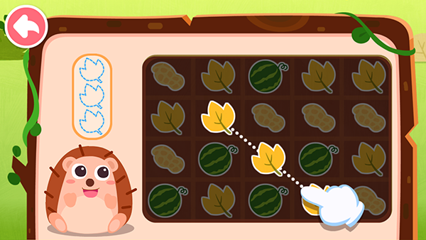 3、以小刺猬为例,进入后会遇到各种小动物,它们面临不同的挑战,我们需要一一帮助它们。