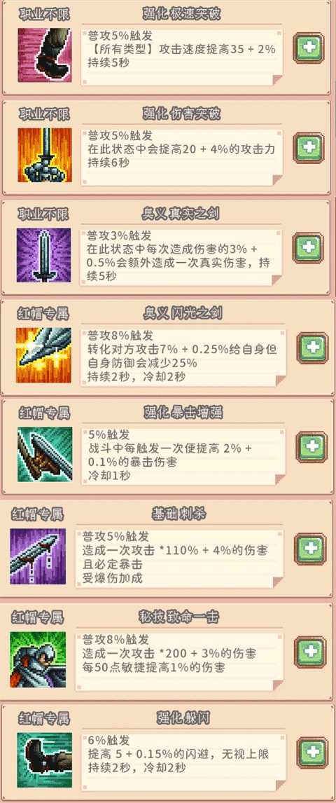红帽:远程职业,就一个词形容:赌怪!敌人越强我越强的代表,依靠独家技能:闪光之剑,可以偷取敌人的攻击力,只要技能触发就是瞬秒。竞速一把手,但上限没有其他职业高,大家都能秒就是红帽最强。