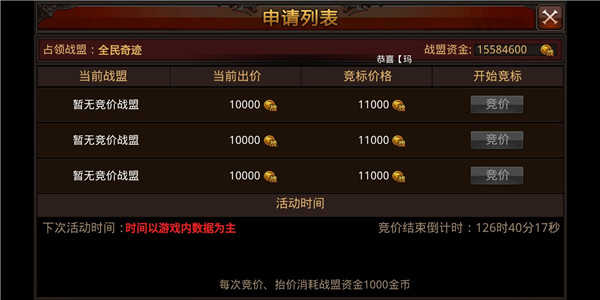 PS:新服活动结束以后,每星期六21:10分准时开启罗兰城战,如没有战盟申请竞价则所有战盟都不能参加罗兰城战。
