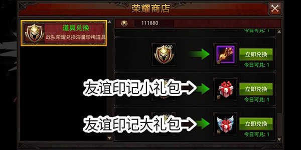 PS:友谊印记获取的最简单直接方法:战队竞技荣耀商店兑换,兑换的具体数量点击礼包查看。