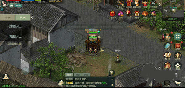 在任务开始之后吗,镖车会自动的前进,玩家要做的就是跟着镖车走就行了。和其他押镖玩法不一样的是,镖车还有一个货物值的设定,这个数值是决定最终奖励的关键。在押镖的过程中会经过几个补给点的,通过补给点可以提升货物值,从而带来收益的提升。