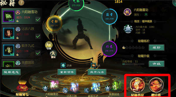 秘籍:通过银两及金币进行秘籍寻获(每日有免费寻获次数);帮会拍卖及世界拍卖可获取。