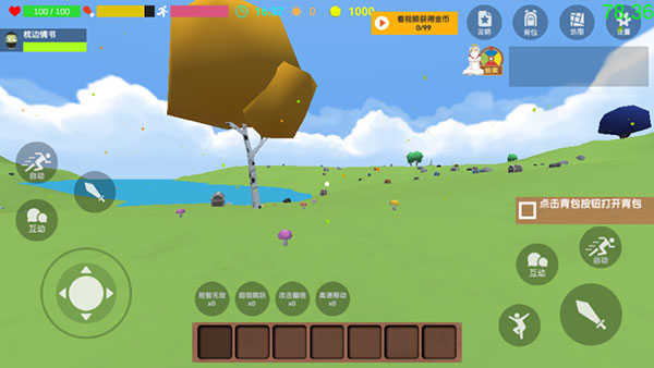 捡起一块随处可见的石头,攻击树木以获取10份木材。