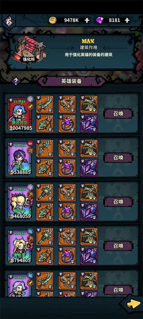 其他的没有必要追求最上级,刷不出来刷个高级就可以,因为防御和生命值都是虚的,没有意义。