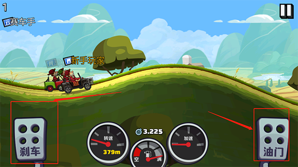我们通过点击游戏来加速,而刹车则是在下坡路段速度控制不住时派上用场,从而来保持小车的平衡。