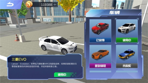 另外,在这款游戏中最为玩家所关心的当属车辆选择,以福特勐禽、三菱EVO、战胜GT-R为代表的车型多达数十款,每款车型都堪称经典,通过游戏任务来获取金币,并在随后的挑战任务中不断更新车辆来感受不同车辆的驾驶快感!