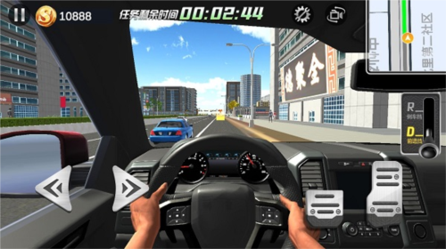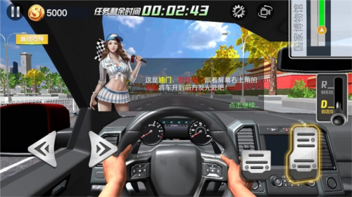 上图中所展示的是油门踏板,按住油门跟着屏幕右上角的导航将车开到前方发光处。