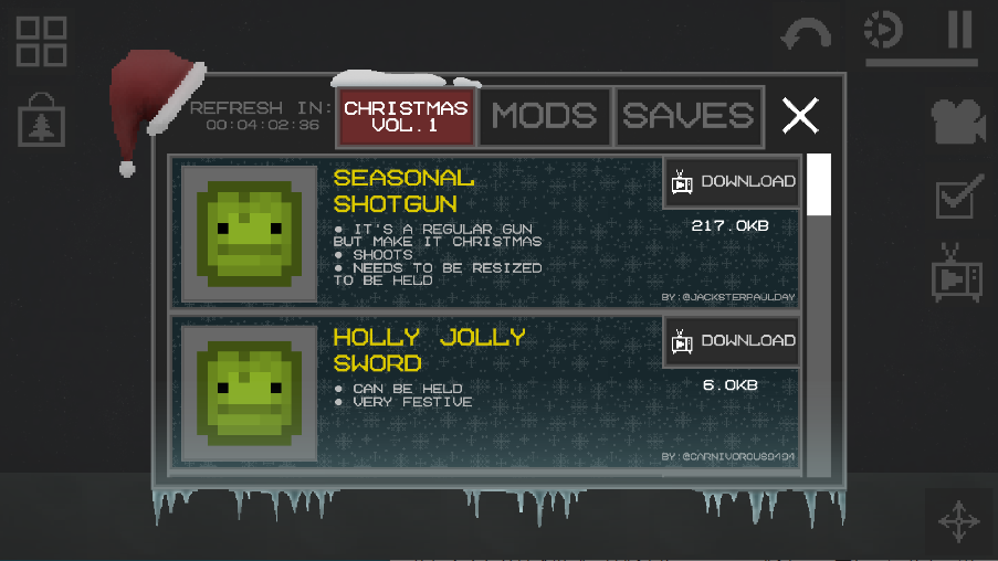 甜瓜游乐场国际版是2D像素沙盒游戏的一个全球版本,相比国内版,它更新更为迅速,内容更加新颖,并且无需观看广告即可直接解锁所有道具。玩家可以自由安装各种模组,充分发挥想象力,编辑属于自己的沙盒世界。