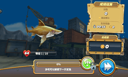 积分条满了(进行游戏就能获得积分)之后解锁该型号的鲨鱼,然后在使用金币购买。