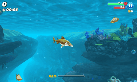字母:玩家在海中收集完HUNGRY全部字母后,鲨鱼就会巨大化,短时间进入无敌模式,什么都能吃。