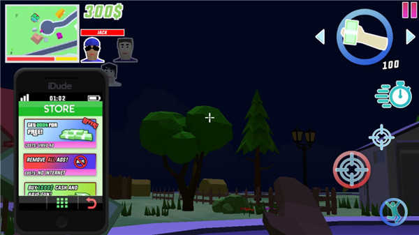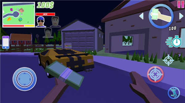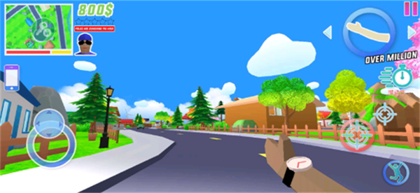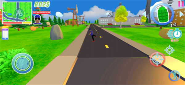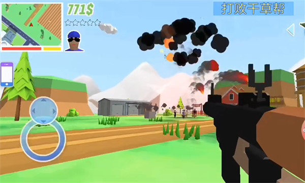 进入游戏后可以看到教程,滑动摇杆控制移动,使用箭头可以切换武器,点击手机可以订购汽车