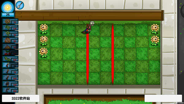 我们只能在己方地盘上种植植物和放置僵尸,首先当然是种植能产阳光的向日葵了。