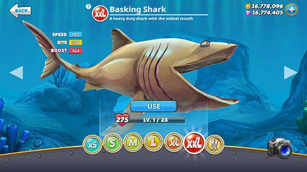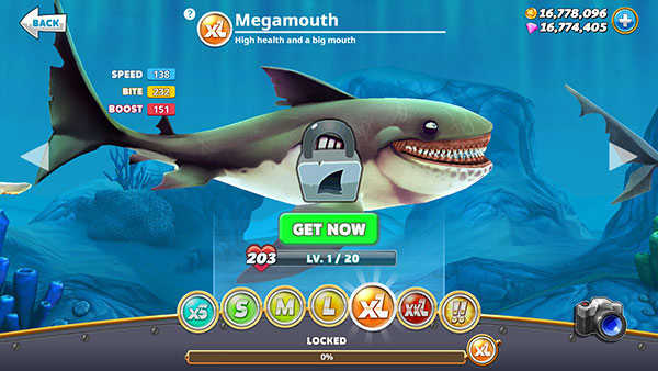 ps:玩家刚进入游戏发现鲨鱼最高只能解锁到xxl级,其实玩家最高可以解锁到最顶级的鲨鱼,就是巨齿鲨。