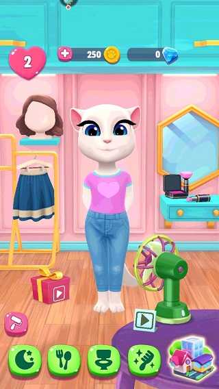 安吉拉也是需要美美的!除了日常的梳毛外,我们可以在化妆间里面,帮助安吉拉涂口红、涂眼影、画眉毛,每个化妆品都有不同的颜色和样式,我们可以打造安吉拉的独特风格。只有你想不到,没有游戏做不到。我们在游戏中可以帮助安吉拉换肤色,换发型,或者换日常的服装,衣服的款式非常多,总有一款你喜欢。