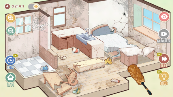 轻松可爱的手绘游戏画风,画面逐渐变整洁的过程满足了玩家的“强迫症