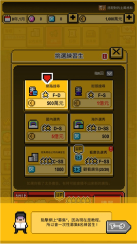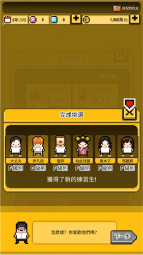 (3)等待互联网筛选之后,就能获得只有F级的练习生。