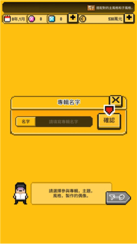 (5)偶像组合,这个就是开始创建粉丝团了,从这里能够获得收入来源。点击下方的笔图标用于创建粉丝团名称,选择夜光棒等,将粉丝积累起来就能获得更多的钱。