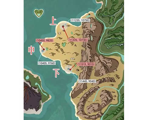 对于火龙,比如玩家会喊6岛沙漠上有火龙。小伙伴们可以按如下图标的3个位置去找火龙。