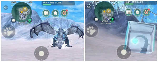 骨龙的周边就会刷珍贵的冰霜龙涎草,采摘后9-15小时在圆圈区域随机刷新。