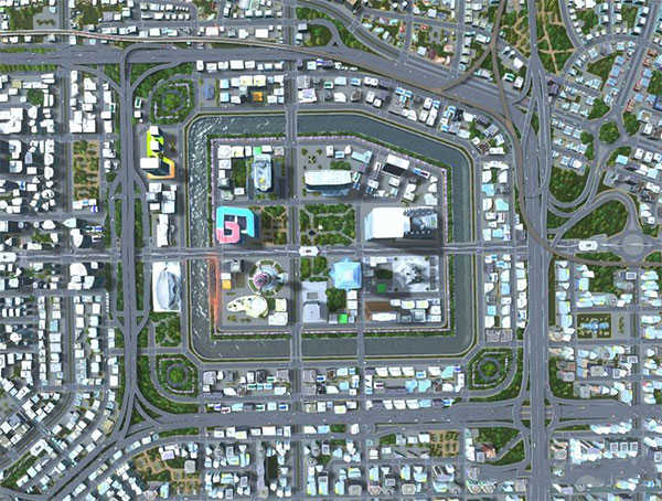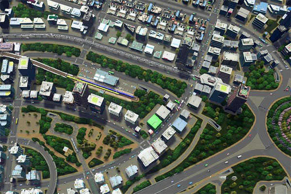方式三:超级街区(详情请查阅“核爆掩体”的帖子),基础概念就是用公园直接导流居民区到商业区的道路,出门就是公园,公园的路就是去往就是商场的路。
