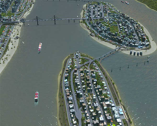 有一个要注意的地方就是出入口数量要合适,不要光顾着修快速路了,出入口不多弄几个会造成出入口严重拥堵,本人很喜欢用环岛作为出入口,有其他更好的办法当然也行;
