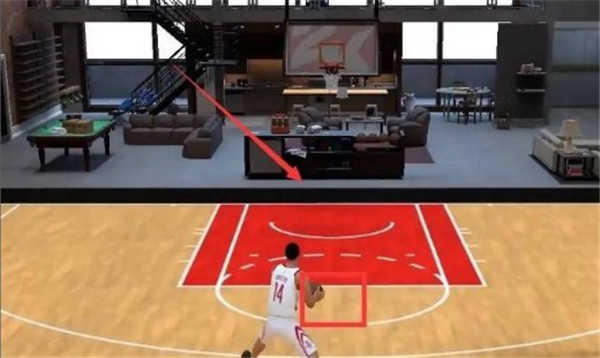 游戏中我们带着球往内线跑,要跑到罚球线处,